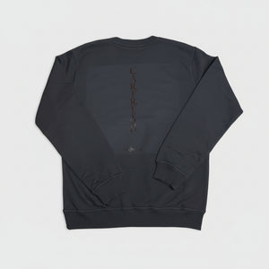 Metallgrå Carfresh Crewneck med litet brösttryck i Brun/Brons och stort tryck längs med ryggraden också Brun/Brons.